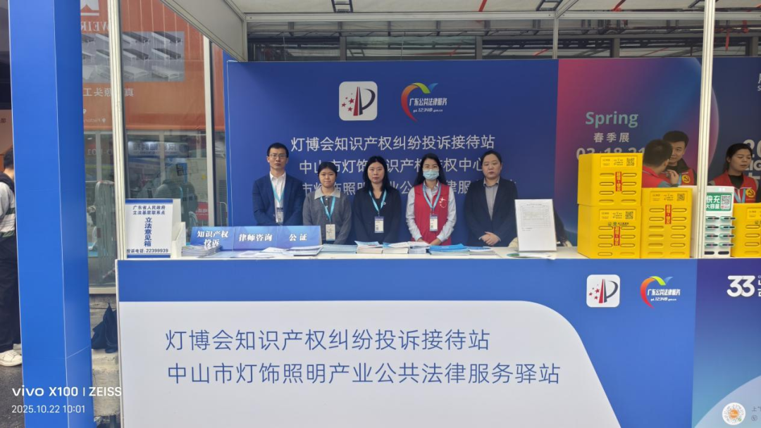 为做好本届灯博会知识产权保护工作,中山快维中心联合古镇镇司法所、律所、公证处、仲裁委员会等部门组建知识产权维权工作小组,驻点受理知识产权侵权投诉、开展知识产权纠纷调解、公证服务和仲裁咨询等,为展会提供全链条、多元化知识产权保护服务,实现展会知识产权问题的“快速响应、高效处置”。